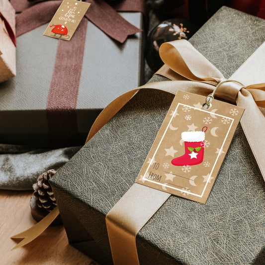 Socken Designs Weihnachten Kraftpapier Etiketten (5x8,5 cm)