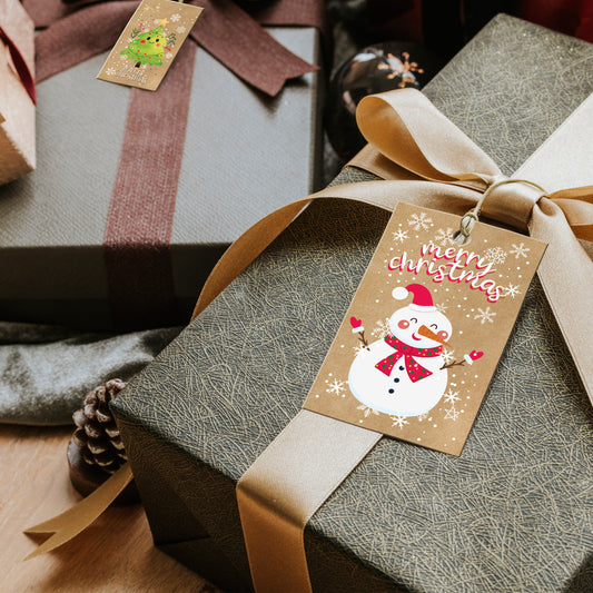 Schneemann Designs Weihnachten Kraftpapier Etiketten (5x8,5 cm)