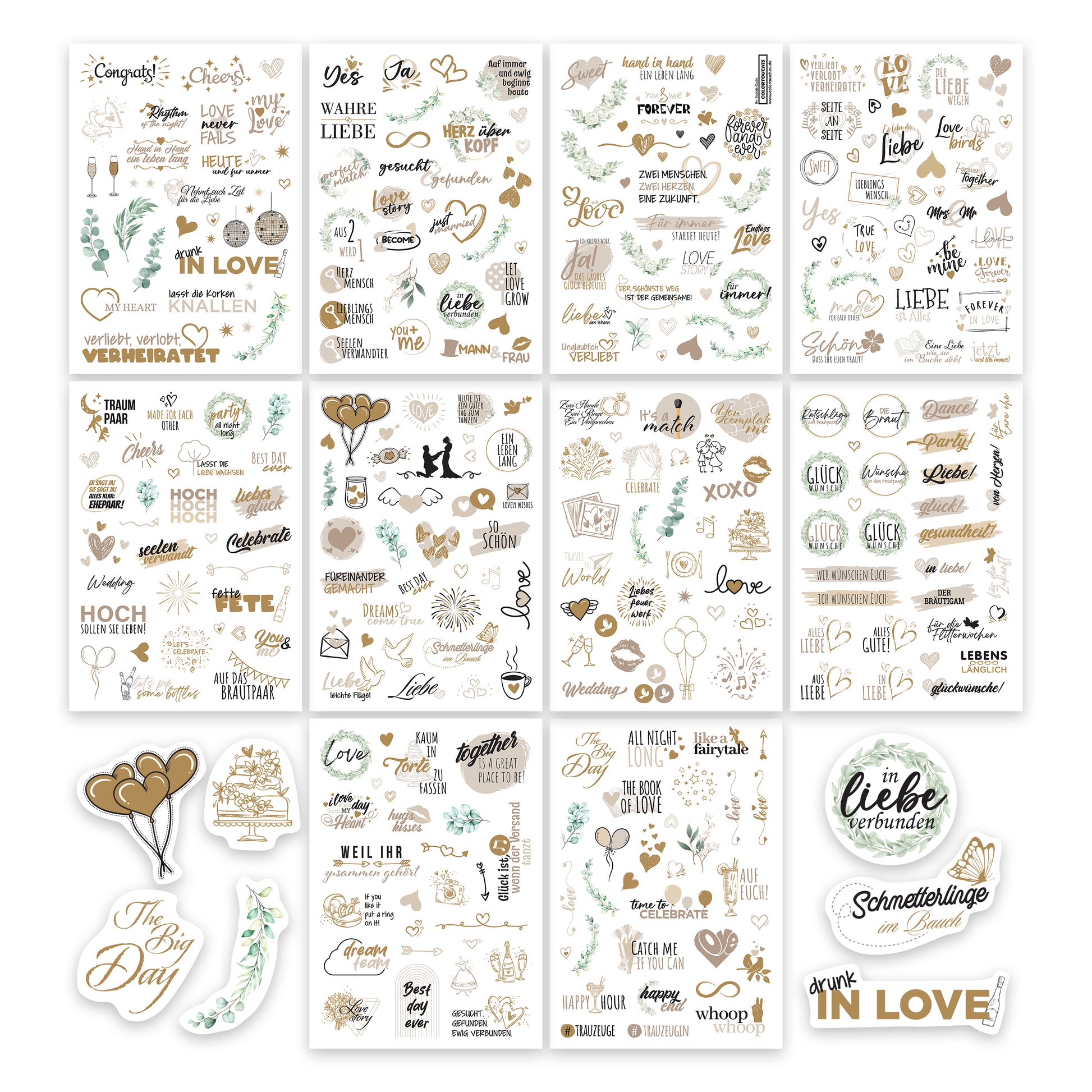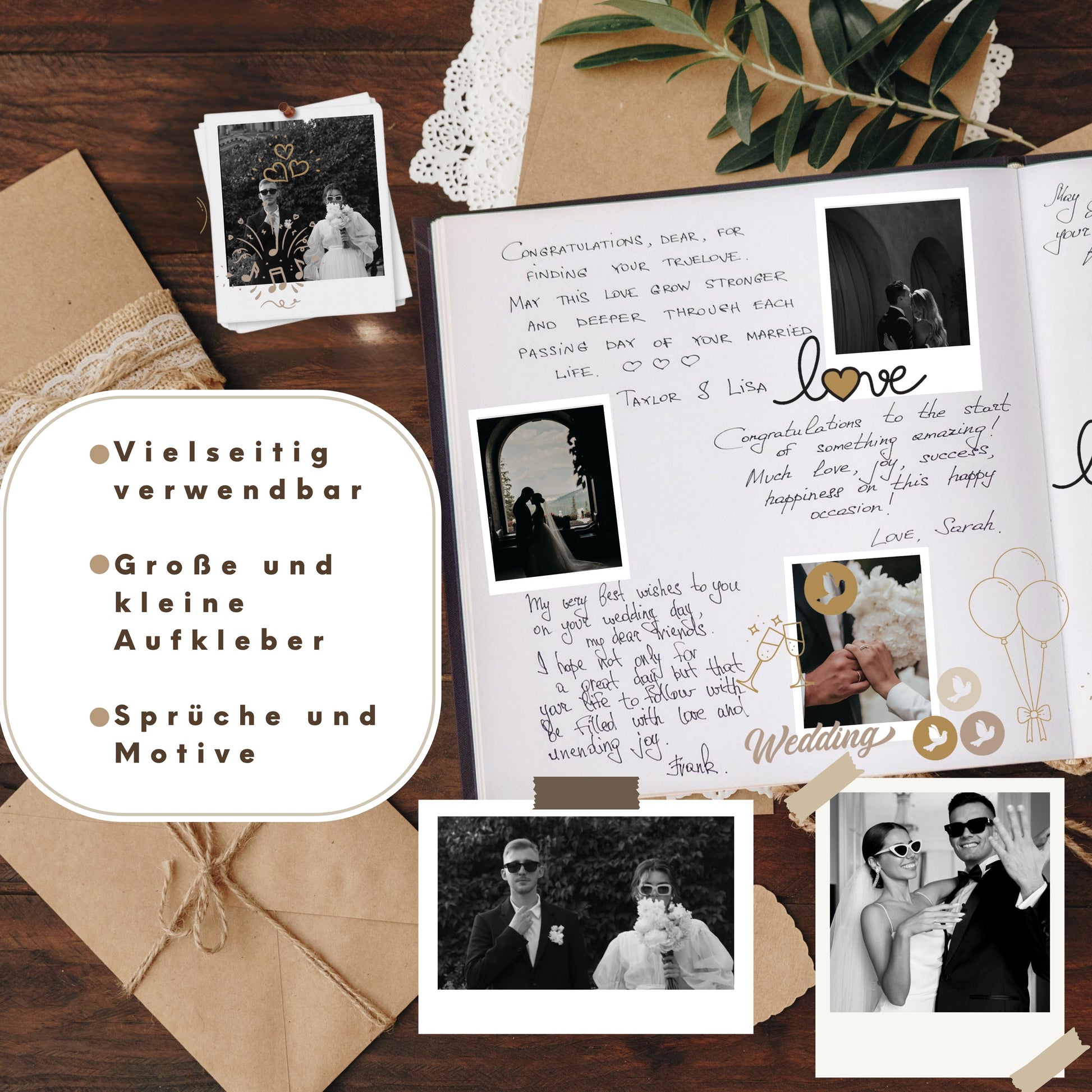 💝 【Hochzeitsaufkleber】 325 Sticker mit eleganten Hochzeitsmotiven in Deutsch und Englisch auf 10 Seiten im A5-Format. Enthält Hochzeitsgrüße, schöne Worte und viele romantische Sticker für ein Vintage-Hochzeitsgästebuch. Alle Sticker sind mit Sorgfalt und viel Liebe für Ihren ganz besonderen Tag gestaltet.