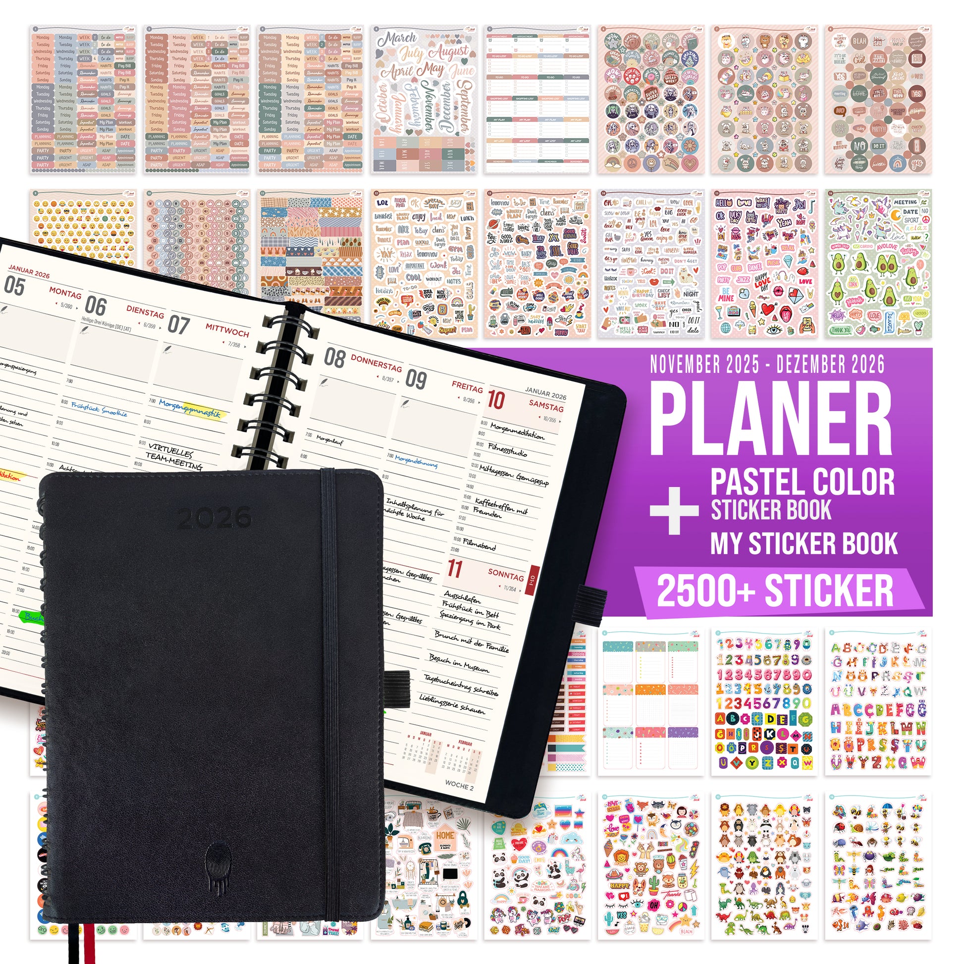 Terminkalender mit Mega Pastel Pack (2500+ St. Aufkleber)